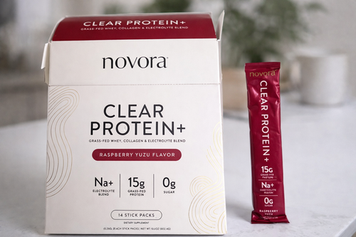“Novora Clear Protein+ is a refreshing, fast-absorbing protein with grass-fed whey and collagen peptides for muscle recovery and joint health. It’s clean, natural, and free from added sugars—perfect for those looking for a light, effective protein boost.”